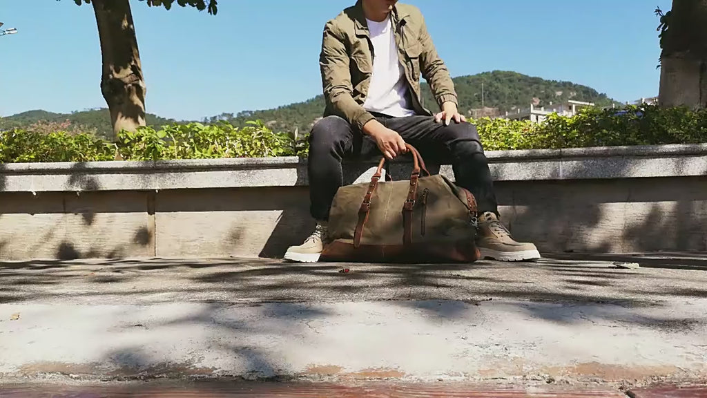 究極の旅の伴侶―ビンテージ加工キャンバスとクレイジーホースレザーのトラベルバッグ。都会の日常から週末の冒険まで、あらゆるシーンで洗練されたスタイルを提供。耐久性と実用性を兼ね備え、どこへ行くにも理想的なパートナーです。上質な素材が時間と共に味わいを増し、あなたの旅を特別なものに変えます。