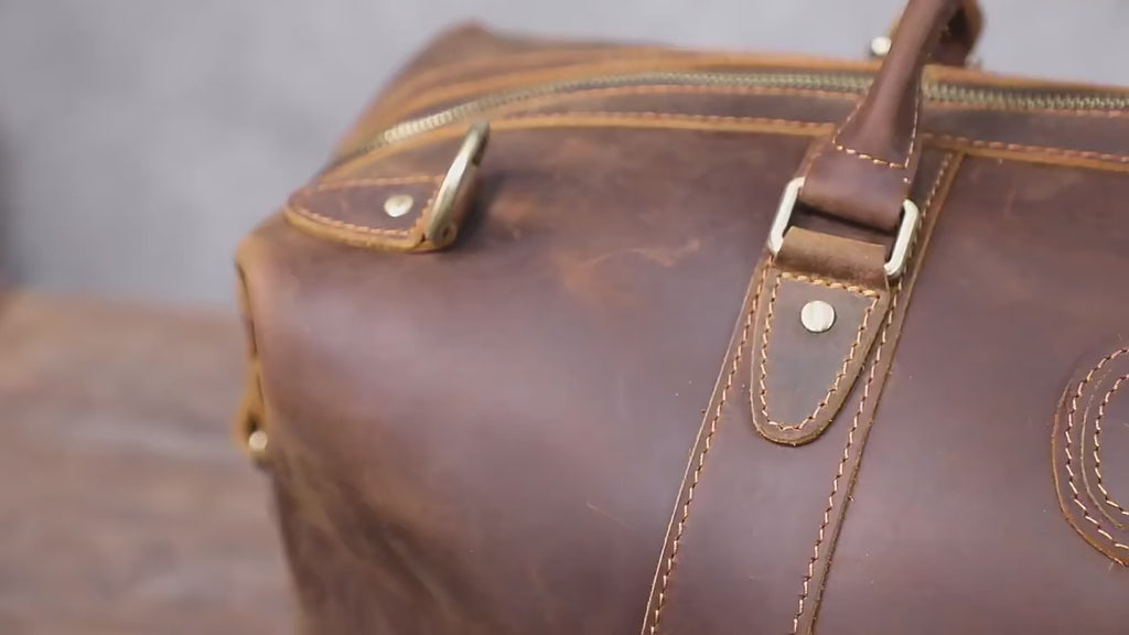 このクレイジーホースレザートラベルバッグは、ただのバッグではありません。あなたのライフスタイルに寄り添い、時と共に美しく成長するパートナーです。ウィークエンダーを通じて、ヴィンテージの美しさと本物の価値を存分にお楽しみください。