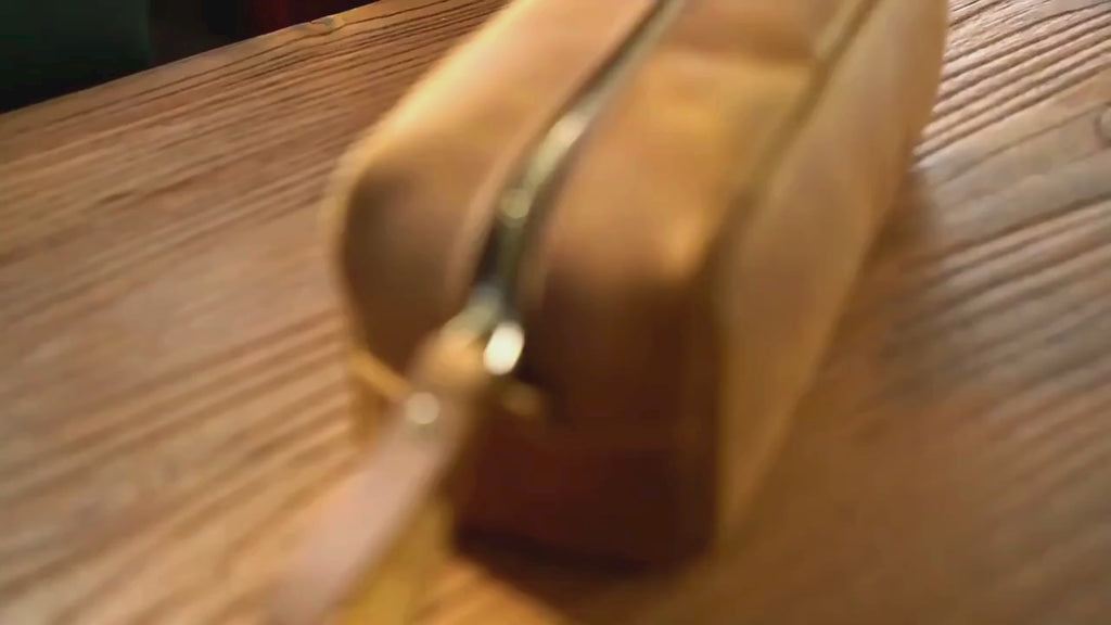 また、クレイジーホースレザーの表面に施された特殊なワックス加工は、この革が持つ別の重要な特徴です。このワックス層が、革に深みと輝きを与えるだけでなく、水や汚れから革を守るバリアの役割を果たします。時間と共にワックスが革の内部へと浸透し、その結果として現れる自然な光沢は、クレイジーホースレザーの特有の質感を一層引き立てます。